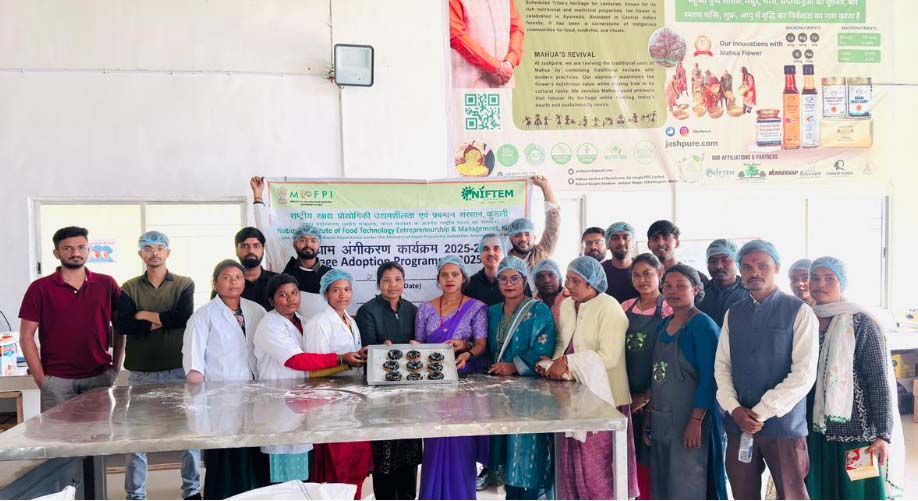 जशपुर में एनआईएफ़टीईएम टीम वैल्यू-एडेड फ़ूड प्रोडक्ट्स के उत्पादन के साथ-साथ पैकेजिंग, ब्रांडिंग और मार्केटिंग के लिए तकनीकी सहायता प्रदान कर रही है। यह पूरी पहल स्थानीय समुदायों को खाद्य प्रसंस्करण आधारित उद्यमिता से जोड़ने के उद्देश्य से चलाए जा रहे ग्राम अंगीकरण कार्यक्रम के अंतर्गत की जा रही है। इस कार्यक्रम का नेतृत्व प्रो. प्रसन्ना कुमार जी.वी. और श्री अभिमन्यु गौर कर रहे हैं, जबकि यह कार्यक्रम एनआईएफ़टीईएम के डायरेक्टर डॉ. हरिंदर सिंह ओबेरॉय के निर्देशन में संचालित हो रहा है। कार्यक्रम के संचालन और विभिन्न गतिविधियों के समन्वय में मिशन मैनेजर श्री विजय शरण प्रसाद और जय जंगल एफपीसी जशपुर के डायरेक्टर श्री समर्थ जैन महत्वपूर्ण भूमिका निभा रहे हैं।
