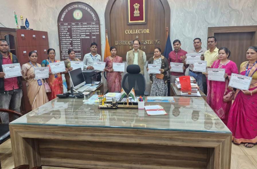 बिलासपुर /मतदाता सूचियों के गहन पुनरीक्षण कार्य में मैदानी स्तर पर कार्यरत बीएलओ का कलेक्टर संजय अग्रवाल निरंतर हौसला बढ़ा रहे है। इस क्रम में उन्होंने आज फिर 30 बीएलओ एवं अभिहित अधिकारियों को प्रशस्ति पत्र देकर सम्मानित किया। जिला निर्वाचन कार्यालय से प्राप्त जानकारी के अनुसार आज सम्मानित होने वाले बीएलओ में विधानसभा क्षेत्र तखतपुर के ग्राम चनाडोंगरी की बीएलओ श्रीमती अंजू वनराजा, साल्हेकापा की मायादेवी जायसवाल, नेवसा की अनिता ठाकुर, खठोलिया की गायत्री कश्यप, गोकुलपुर की सुनीता बघेल, गनियारी की शिल्पा वैष्णव, महुआकापा के गौरीशंकर कौशिक, टिकरी की प्रगति साहू, परसाकापा रूपमणी कश्यप, मस्तुरी विधानसभा क्षेत्र के ग्राम भगवान पाली के बीएलओ हरिचंद्र वर्मा, कुकदा के बीएलओ बजरंग प्रसाद बरेठ, देवीनारायण पटेल, श्रवण कुमार देवांगन, पकरिया की हेमलता सिंह, गतौरा के मिन्टु सांडे एवं हेमलता राठौर शामिल है। इसी प्रकार बेलतरा विधानसभा क्षेत्र के ग्राम मोहतराई के बीएलओ अशोक राव, हरदीडीह के कमलेश कुमार काछी, रेलहा की विमला, कोटा विधानसभा क्षेत्र के ग्राम रानीसागर की बीएलओ त्रिवेशी सिंह ठाकुर, कसईबहरा के अजय कुमार पैकरा, बृजभान सिंह श्याम, जोगीपुर के स्नेक मरावी, नंदेश्वरी मरावी, टेंगनमुड़ा के लक्ष्मी कोरी, खैरझिटी के कृष्णाबाई बैगा, लक्ष्मीन लहरे और जगदीश सिंह पैकरा शामिल है। इन सभी बीएलओ ने मतदाता पुनरीक्षण के अंतर्गत गणना पत्रक वितरण, पत्रक भरवाने, प्राप्त फॉर्म की पूर्ण संग्रहण और उनके ऑनलाईन एंट्री जैसे महत्वपूर्ण चरणों को दक्षता और समयबद्धता के साथ शत प्रतिशत पूरा किया।