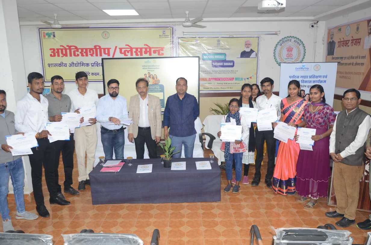 01 अक्टूबर 2025 को शासकीय आईटीआई सड्डू, रायपुर में प्रारंभ हुए इस विशेष प्रशिक्षण कार्यक्रम का, 30 नवंबर 2025 को प्रशिक्षण पूर्ण होने पर आयोजित समापन कार्यक्रम में कलेक्टर डॉ. गौरव सिंह ने आज 62 प्रशिक्षणार्थियों को प्रमाण-पत्र एवं ईज़ ट्रिप प्लानर, नई दिल्ली की ओर से जॉब ऑफर लेटर प्रदान किए। कुल 123 युवाओं ने प्रशिक्षण में भाग लिया था।