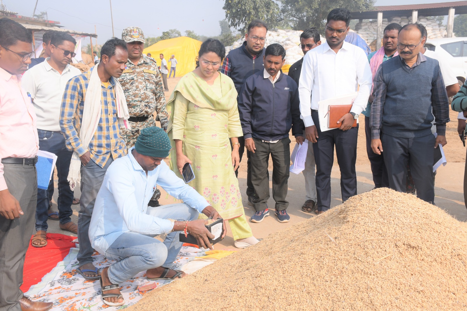 कलेक्टर श्रीमती मिश्रा ने अधिकारियों के साथ धान खरीदी केन्द्रों में पहुँचकर किसानों द्वारा बिक्री हेतु लाए गए धान का सूक्ष्मता से परीक्षण किया। इस मौके पर अधिकारियों द्वारा किसानों द्वारा लाए गए धान का नमी मापक यंत्र के माध्यम से धान का आर्द्रता परीक्षण भी किया गया। कलेक्टर ने किसानों को केवल साफ-सुथरा एवं गुणवत्तायुक्त धान को ही बिक्री हेतु खरीदी केन्द्रों में लाने की समझाईश दी। उन्होंने धान खरीदी केन्द्रों में अब तक जारी किए गए टोकन एवं गेटपास के संबंध में जानकारी ली। उन्होंने कहा कि आॅफलाईन माध्यम से प्राथमिकता के साथ अति वृद्ध, निरक्षर एवं किसानों के पास स्मार्ट फोन उपलब्ध नही होने पर ही उनका टोकन जारी किया जाए। कलेक्टर ने धान की गुणवत्ता बनाए रखने उसकी साफ-सफाई कराने तथा गेट पर ही धान की गुणवत्ता की जांच करने के निर्देश दिए।