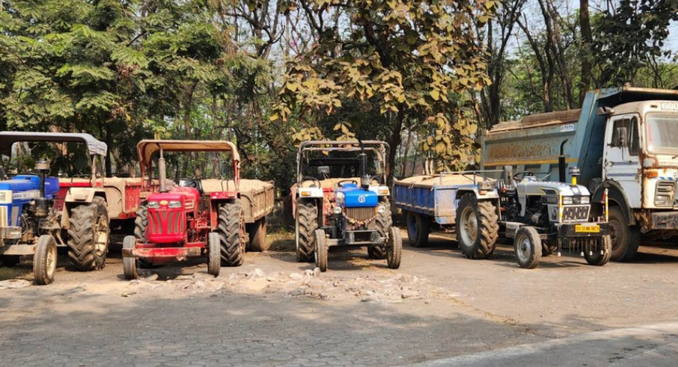 अवैध रेत परिवहन के मामले में 9 ट्रैक्टर जब्त