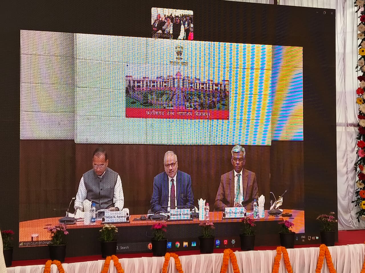 उक्त कार्यक्रम माननीय श्री न्यायाधिपति रमेश सिन्हा, मुख्य न्यायाधीश, उच्च न्यायालय छत्तीसगढ़, बिलासपुर द्वारा वर्चुअल माध्यम से संपन्न किया गया। कार्यक्रम की गरिमा माननीय श्री न्यायाधिपति संजय के. अग्रवाल, न्यायाधीश, उच्च न्यायालय छत्तीसगढ़, बिलासपुर तथा माननीय श्री न्यायाधिपति पार्थ प्रतीम साहू, न्यायाधीश, उच्च न्यायालय छत्तीसगढ़, बिलासपुर एवं पोर्टफोलियो जज, जिला दुर्ग, छत्तीसगढ़ की गरिमामयी वर्चुअल उपस्थिति से और अधिक बढ़ी।