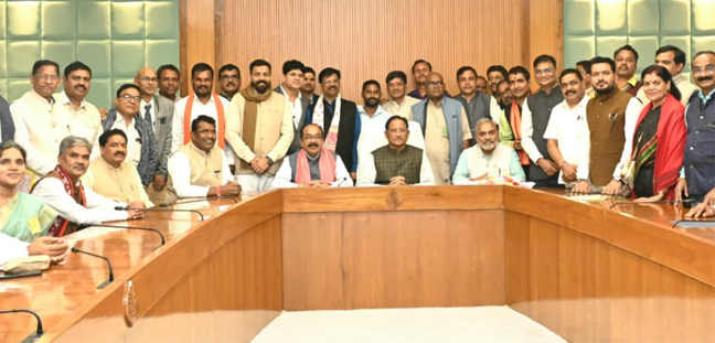 रायपुर । मुख्यमंत्री श्री विष्णु देव साय से विगत दिवस छत्तीसगढ़ विधानसभा भवन में साहू समाज के प्रतिनिधिमंडल ने सौजन्य मुलाकात की। मुख्यमंत्री श्री साय ने साहू समाज के नवनिर्वाचित पदाधिकारी को बधाई और शुभकामनाएं दी। इस अवसर पर उपमुख्यमंत्री श्री अरुण साव, विधायक श्री ईश्वर साहू, विधायक श्री इंद्र कुमार साहू सहित साहू समाज के नवनिर्वाचित प्रांतीय अध्यक्ष डॉ नीरेंद्र साहू,उपाध्यक्ष श्री सत्यप्रकाश साहू, श्री गिरजा साहू, श्री नारद साहू, श्री नन्द लाल साहू श्री चंद्रभूषण साहू सहित साहू समाज के नवनिर्वाचित राज्य स्तरीय तथा जिला स्तरीय पदाधिकारीगण उपस्थित थे।