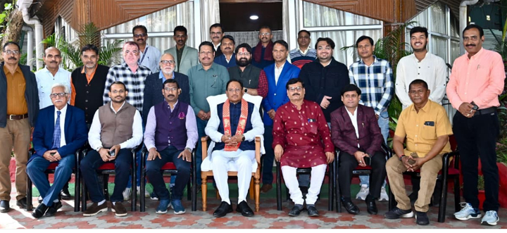 रायपुर। मुख्यमंत्री श्री विष्णुदेव साय से राजस्थान के अंतर्राज्यीय अध्ययन भ्रमण से लौटने के उपरांत छत्तीसगढ़ के पत्रकारों के दल ने आज राजधानी रायपुर स्थित मुख्यमंत्री निवास में सौजन्य मुलाकात की। इस अवसर पर पत्रकारों ने 15 से 20 दिसम्बर तक राजस्थान भ्रमण के दौरान वहां की विधायिका, प्रशासनिक कार्यप्रणाली तथा पर्यटन के क्षेत्र में किए गए नवाचारों के अनुभवों को साझा किया।