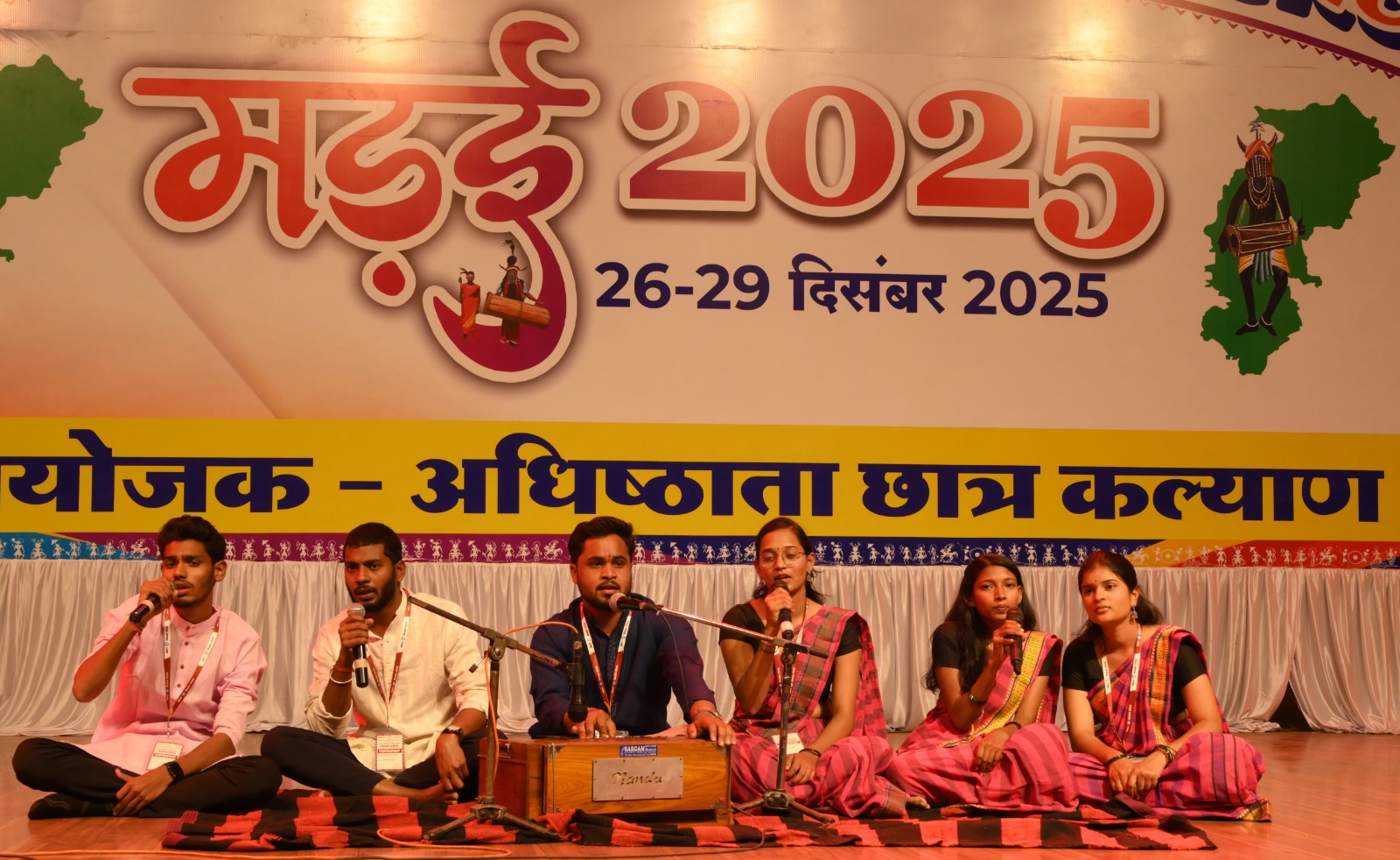 चतुर्थ दिवस 29 दिसम्बर को प्रातः 09 बजे से लघु नाटिका, तात्कालिक भाषण, लोक एवं आदिवासी नृत्य तथा पाश्चात्य समूह गीत प्रतियोगिताओं का आयोजन किया जाएगा। ‘‘मड़ई-2025’’ का पुरस्कार वितरण एवं समापन समारोह 29 दिसम्बर को अपरान्ह 04 बजे सम्पन्न होगा। समापन समारोह की मुख्य अतिथि प्रो. (डॉ.) लवली शर्मा, कुलपति इंदिरा कला संगीत विश्वविद्यालय, खैरागढ़ (छ.ग.) होंगी तथा समारोह के अध्यक्षता डॉ. गिरीश चंदेल, कुलपति इंदिरा गांधी कृषि विश्वविद्यालय करेंगे। इस अवसर पर डॉ. संजय शर्मा, अधिष्ठाता छात्र कल्याण, आयोजन सचिव डॉ. सुनिल नाग, प्रतियोगिताओं के प्रभारी, निर्णायकगण तथा टीम मैनेजर्स भी गरिमामयी रूप से उपस्थित रहेंगे।