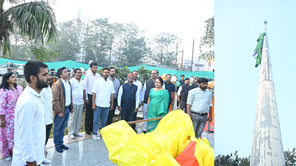 रायपुर/ 77वें गणतंत्र दिवस पर राजधानी शहर की प्रथम नागरिक नगर पालिक निगम रायपुर की महापौर श्रीमती मीनल चौबे ने राष्ट्रध्वज तिरंगा फहराया और समस्त नागरिकों को गणतंत्र दिवस पर हार्दिक शुभकामनायें दीं.इस अवसर पर तेलीबाँधा तालाब मरीन ड्राइव में 82 मीटर ऊँचे फ्लैग पोस्ट स्थल पर नगर पालिक निगम रायपुर के सभापति श्री सूर्यकान्त राठौड़, जल कार्य विभाग अध्यक्ष श्री संतोष सीमा साहू, वार्ड पार्षद श्री प्रदीप वर्मा सहित नगर निगम कार्यपालन अभियंता श्री अंशुल शर्मा जूनियर और गणमान्यजनों, सामाजिक कार्यकर्त्ताओं, महिलाओं, नवयुवकों, आमजनों की उपस्थिति रही. समस्त उपस्थित गणमान्यजनों और आमजनों ने सामूहिक राष्ट्रगान किया.