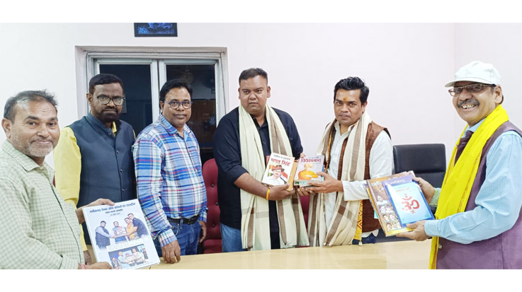 वरिष्ठ पत्रकार तपेश जैन और महासचिव गौरव शर्मा ने भेंट की पुस्तकें