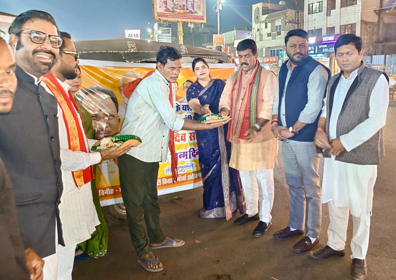 मुख्यमंत्री साय के जन्मदिन पर किसान मोर्चा ने जरूरतमंद लोगों को भोजन वितरित किया