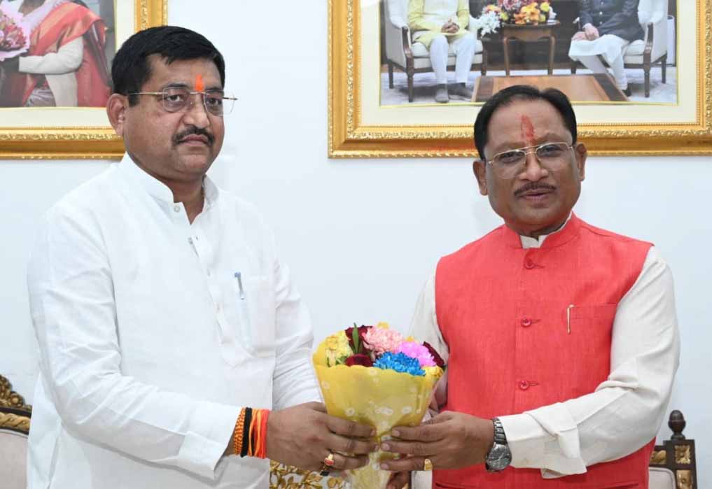रायपुर। मुख्यमंत्री श्री विष्णुदेव साय से गुरुवार को शाम यहां उनके निवास कार्यालय में उत्तरप्रदेश सरकार के राज्यमंत्री जलशक्ति विभाग श्री रामकेश निषाद ने सौजन्य मुलाकात की। मुख्यमंत्री श्री साय ने छत्तीसगढ़ प्रवास पर आए श्री निषाद का राज्य में स्वागत करते हुए उन्हें बस्तर आर्ट का प्रतीक चिन्ह और बस्तर पंडुम की पुस्तिका भेंट की। मुख्यमंत्री श्री साय को श्री निषाद ने छत्तीसगढ़ में खेलो इंडिया ट्राइबल गेम्स 2026 के सफल आयोजन पर हार्दिक बधाई दी। मुख्यमंत्री ने श्री निषाद से छत्तीसगढ़ में खेल और खिलाड़ियों को बढ़ावा देने सरकार द्वारा किए जा रहे कार्यों सहित विभिन्न विषयों पर चर्चा की।