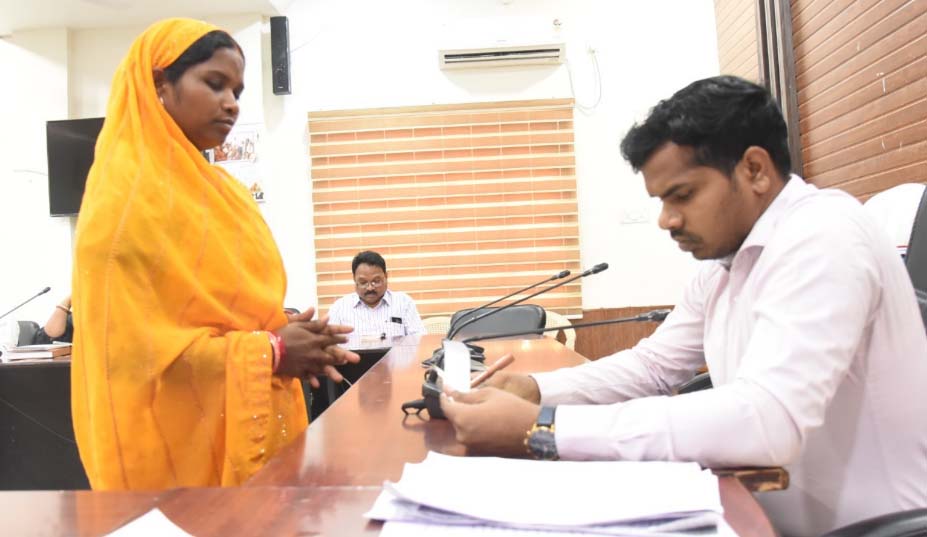 दुर्ग / जिला कार्यालय के सभाकक्ष में आज आयोजित कलेक्टर जनदर्शन में विभिन्न विभागों से संबंधित 117 आवेदन प्राप्त हुए। कलेक्टर श्री अभिजीत सिंह के निर्देश पर डिप्टी कलेक्टर श्री उत्तम ध्रुव ने जनदर्शन में पहुंचे, जनसामान्य लोगों से मुलाकात कर उनकी समस्याएं सुनी। उन्होंने जनदर्शन में पहुंचे सभी लोगों की समस्याओं को गंभीरता से सुना और समुचित समाधान एवं निराकरण करने संबंधित विभागों को शीघ्र कार्यवाही कर आवश्यक पहल करने हेतु मार्क किया। जनदर्शन में अवैध कब्जा, आवासीय पट्टा, प्रधानमंत्री आवास, भूमि सीमांकन कराने, सीसी रोड निर्माण, ऋण पुस्तिका सुधार, आर्थिक सहायता राशि दिलाने, बढ़ती गर्मी को ध्यान में रखते हुए स्कूलों का समय बदलने, राशन कार्ड से नाम हटवाने/जुड़वाने, पानी निकासी हेतु नाली की व्यवस्था, पेय जल एवं तालाबों में निस्तारी पानी भरने संबंधी सहित विभिन्न मांगों एवं समस्याओं से संबंधित आज 117 आवेदन प्राप्त हुए। राशन कार्ड से खाद्यान्न न मिलने के एक प्रकरण में खाद्य विभाग अधिकारी ने आवेदक को अवगत कराया कि खाद्यान्न प्राप्ति हेतु ई-केवायसी आवश्यक है। उन्होंने अवगत कराया कि स्वयं के एनड्राइड मोबाइल पर माय ’ई-केवायसी’ डाउनलोड कर आवेदक स्वयं भी ईकेवायसी कर सकते है। इस अवसर पर समाज कल्याण नगरी निकाय, खाद्य राजस्व सहित अन्य विभाग के अधिकारी उपस्थित थे।