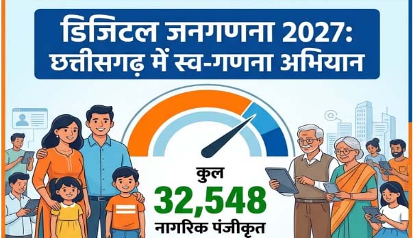 डिजिटल जनगणना 2027: छत्तीसगढ़ में 32,548 नागरिक पोर्टल पर पंजीकृत, 23 हज़ार से अधिक ने पूर्ण की स्व-गणना