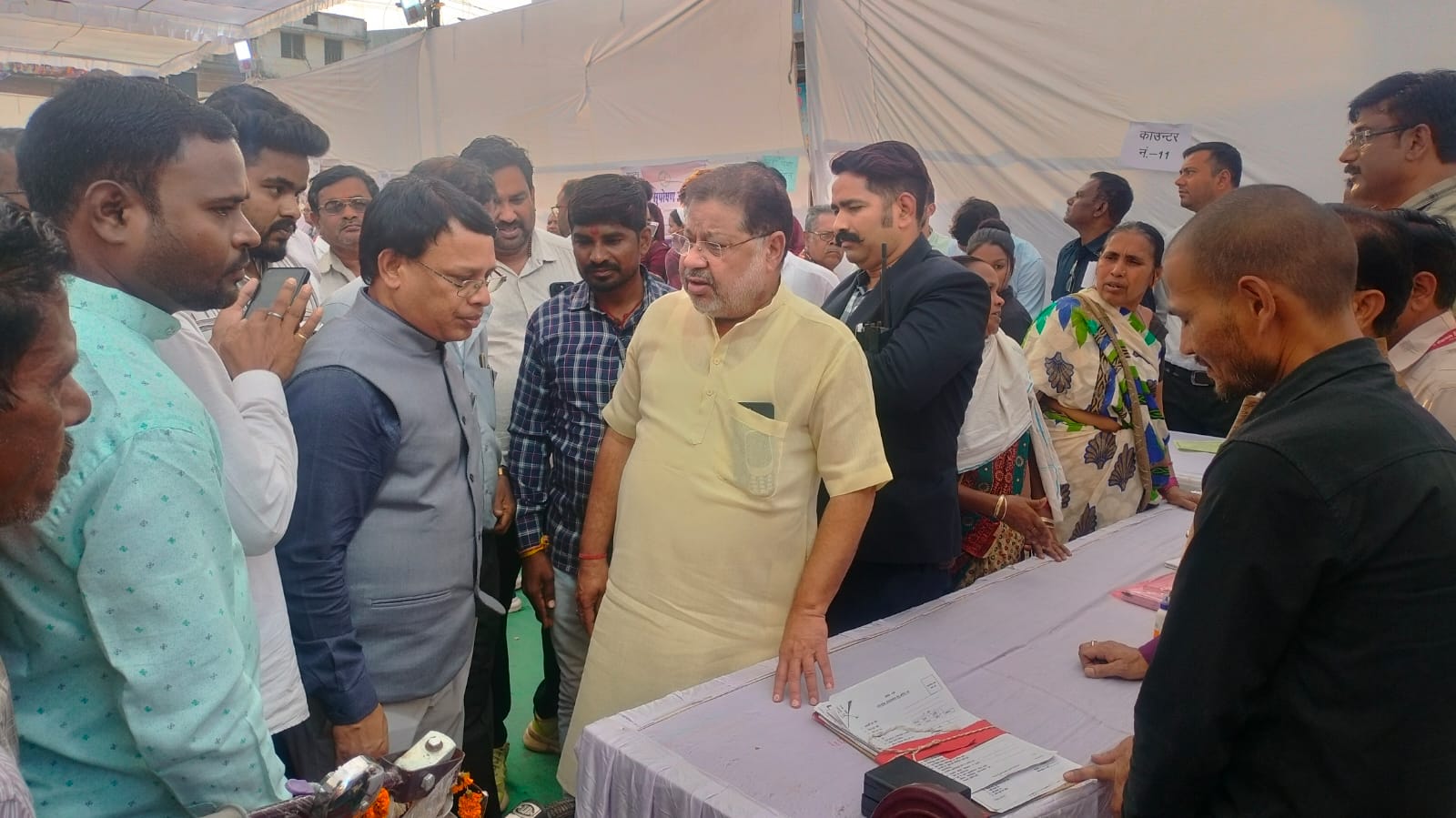 रायपुर / केन्द्र सरकार के विकसित भारत संकल्प यात्रा अभियान के रायपुर ग्रामीण विधानसभा क्षेत्र के अंतर्गत नगर पालिक निगम रायपुर के जोन क्रमांक 10 के तहत बाबू जगजीवन राम वार्ड क्रमांक 53 के सांस्कृतिक भवन गांधी चौक देवपुरी में शिविर लगाया गया। इसमे सांसद श्री सुनील सोनी सम्मिलित हुए। उन्होेने शासकीय विभागों द्वारा लगाये गये स्टॉलों में जाकर किया।