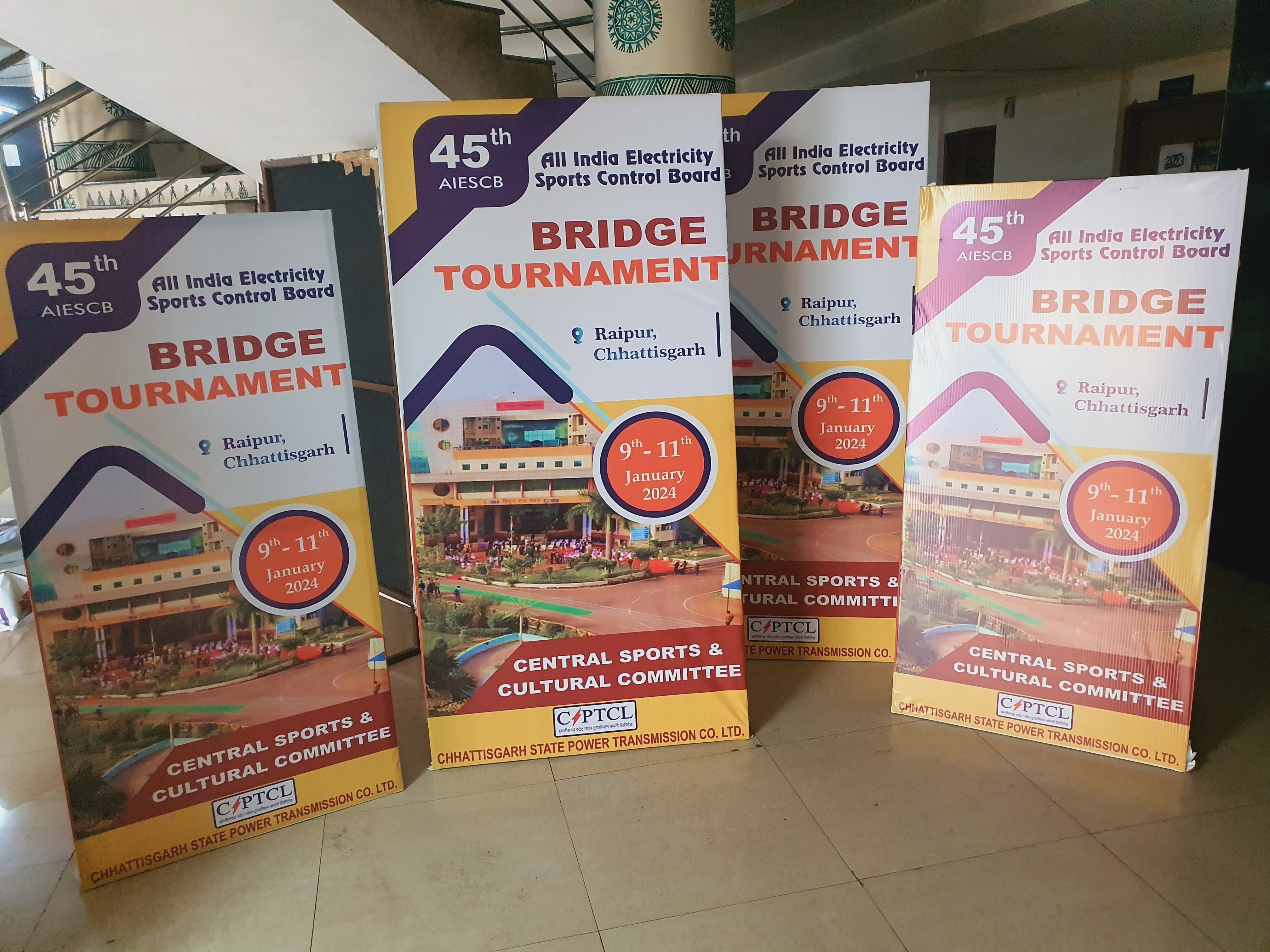रायपुर । 45वें अखिल भारतीय ब्रिज टूर्नामेंट का आयोजन छत्तीसगढ़ स्टेट पॉवर कंपनीज ने 9 से 11 जनवरी तक रायपुर में किया है। तीन दिवसीय इस ब्रिज खेल स्पर्धा में अखिल भारतीय विद्युत खेल नियंत्रण बोर्ड के अधीन आने वाले कई राज्य के खिलाड़ी शामिल होंगे। इसका उद्घाटन 9 जनवरी को सुबह 10 बजे एम्स के सामने होटल गगन पैलेस में किया जाएगा।