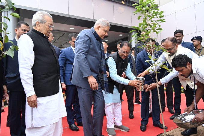 रायपुर। उप राष्ट्रपति श्री जगदीप धनखड़, राज्यपाल श्री विश्वभूषण हरिचंदन और मुख्यमंत्री श्री विष्णु देव साय ने स्मृति स्वरूप इंदिरा गाँधी कृषि विश्वविद्यालय परिसर में मौल श्री का पौधा रोपित किया। उप राष्ट्रपति श्री जगदीप धनखड़ ने कृषि स्टार्ट अप, बायोटेक और कृषि विज्ञान केंद्र द्वारा लगाए गए विभिन्न स्टालों का निरीक्षण किया।