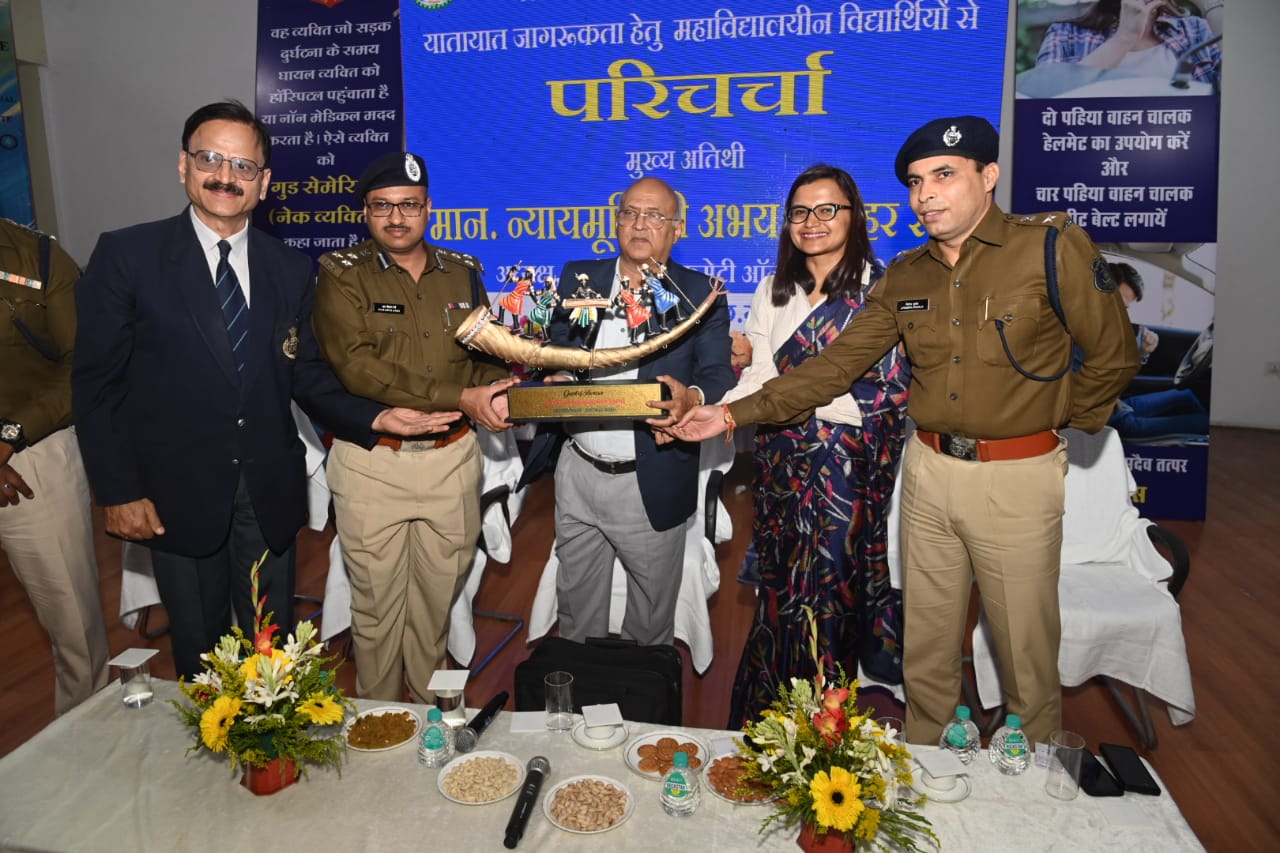 आईजी श्री रामगोपाल गर्ग ने कहा कि राष्ट्रीय सड़क सुरक्षा माह का आयोजन सड़क दुर्घटनाओं में कमी लाने एवं सड़क सुरक्षा के प्रति लोगों में जागरूकता लाने लिए शुरू किया जा रहा है। 2016 में सुप्रीम कोर्ट कमेटी फॉर रोड सेफ्टी गठन किया गया। हमारा उद्देश्य है कि सड़क सुरक्षा नियमों का पालन कराना और उससे बचने के उपाय बताना। प्रकाश व्यवस्था, संकेतक, रोड मार्किंग व गति नियंत्रक बोर्ड लगाने से एक्सीडेंट में कमी आई है। उन्होंने कहा कि 60 प्रतिशत से अधिक सड़क दुर्घटनाएं दूसरों की गलती से होती जिसके लिए हमें हेलमेट पहनना और सीट बेल्ट लगाना आवश्यक है। जिससे हमारा जीवन सुरक्षित रह सके। हमारा प्रयास रहेगा कि जिले में शत प्रतिशत लोगों को हेलमेट पहनने के लिए जागरूक कर सके। उन्होंने माता-पिता, भाई-बहनों, मित्रों को प्रेरित करने को कहा कि वे नशे में गाड़ी ना चलाए, सीट बेल्ट पहने व यातायात नियमों का पालन करें। गुड सेमेरिटन (नेक व्यक्ति) ऐसे व्यक्ति जो सड़क दुर्घटना के समय घायल व्यक्ति को अपने वाहन से हॉस्पिटल पहुंचाया हो या नॉन मेडिकल मदद किया हो। ऐसे व्यक्ति को गुड सेमेरिटन (नेक व्यक्ति) कहा जाता है। इस दौरान गुड सेमेरिटन में अपनी महत्वपूर्ण भूमिका अदा करने के लिए न्यायमूर्ति श्री अभय मनोहर सप्रे ने श्रीमती सुभद्रा देवी एवं श्री अश्वनी टंडन को पुरस्कृत किया।