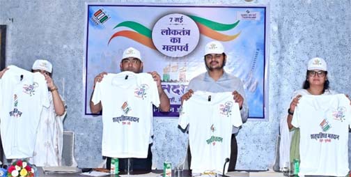 कलेक्टर ने स्वीप कार्यक्रम के तहत टी-शर्ट, टोपी और स्टीकर का किया विमोचन