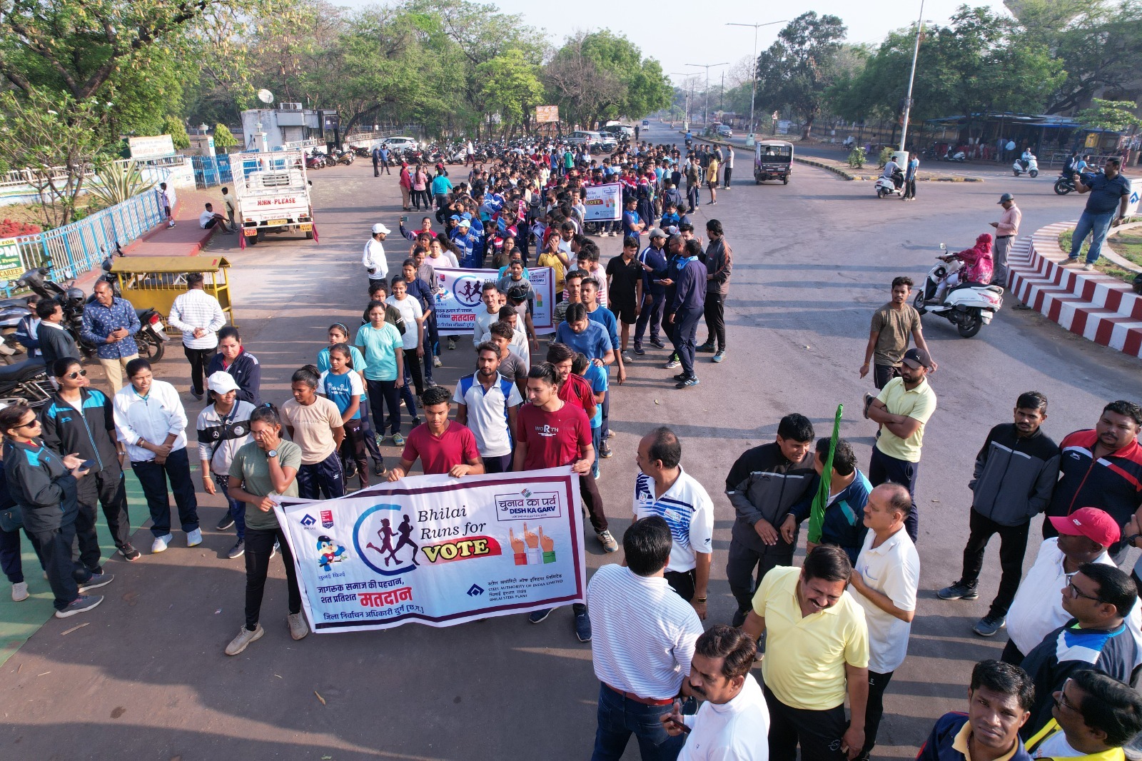 दुर्ग / कलेक्टर एवं जिला निर्वाचन अधिकारी सुश्री ऋचा प्रकाश चौधरी के मार्गदर्शन में आगामी लोकसभा निर्वाचन में मतदान प्रतिशत् में वृद्धि हेतु निरंतर आयोजन किए जा रहे हैं। इसी कड़ी में आज जिला निर्वाचन अधिकारी सुश्री चौधरी के निर्देशानुसार भिलाई के सेक्टर 9 चौक से ’भिलाई रन्स फॉर वोट’ मैराथान का आयोजन किया गया। यह आयोजन सेक्टर 9 हॉस्पिटल चौक से शुरू होकर ग्लोब चौक में समाप्त हुआ। इस कार्यक्रम में भिलाई निगम आयुक्त ने सभी प्रतिभागियों और मतदाताओं को मतदान की शपथ दिलाई।