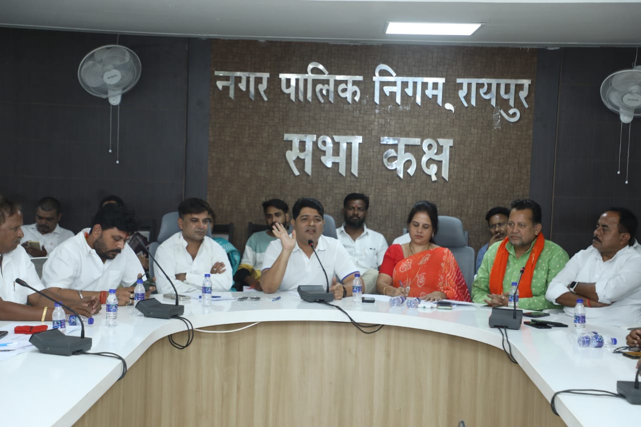 रायपुर । आज नगर पालिक निगम रायपुर के महापौर श्री एजाज ढेबर ने नगर निगम मुख्यालय भवन महात्मा गांधी सदन के तृतीय तल सभा कक्ष में वार्डो में गर्मी के दौरान पेयजल आपूर्ति के संदर्भ में बैठक बुलाकर वार्डो के प्रतिनिधि पार्षदों से चर्चा कर जानकारी नगर निगम नेता प्रतिपक्ष श्रीमती मीनल चैबे, उपनेता प्रतिपक्ष श्री मनोज वर्मा, जलकार्य विभाग अध्यक्ष श्री सतनाम सिंह पनाग, एमआईसी सदस्य सर्वश्री ज्ञानेष शर्मा, नागभूषण राव, श्रीकुमार मेनन, सुन्दरलाल जोगी, सहदेव व्यवहार, सुरेष चन्नावार, श्रीमती द्रौपती हेमंत पटेल, श्रीमती अंजनी राधेष्याम विभार, जोन अध्यक्ष श्री विनोद अग्रवाल, श्री मन्नू विजेता यादव, श्रीमती निषा देवेन्द्र यादव, श्री मनीराम साहू, श्री आकाष दीप शर्मा, पार्षद श्रीमती सरिता आकाष दुबे, श्रीमती सरिता वर्मा, श्रीमती सुषीला धीवर, श्रीमती उमा चंद्रहास निर्मलकर, श्रीमती गोदावरी गज्जू साहू, श्रीमती सावित्री जयमोहन साहू, श्रीमती टेसू नंदकिषोर साहू, श्रीमती दिलेष्वरी अन्नू राम साहू, श्रीमती कामिनी पुरूषोत्तम देवांगन, श्रीमती सीमा विष्णु बारले, श्रीमती नीलम नीलकंठ जगत, श्रीमती सुमन राम प्रजापति, सर्वश्री अमर बंसल, कुंवर रजयंत सिंह धु्रव, दीपक जायसवाल, उत्तम साहू, रोहित साहू , गोपेष साहू, रवि धु्रव सहित उपायुक्त डाॅ. आर.के. डोंगरे, जोन कमिष्नरगणों, अधीक्षण अभियंता श्री राजेष शर्मा, कार्यपालन अभियंता फिल्टर प्लांट श्री नरसिंह फरेन्द्र, कार्यपालन अभियंता अमृत मिषन श्री अंषुल शर्मा, जोन के कार्यपालन अभियंतागणों, सहायक अभियंतागणों, उपअभियंतागणो की उपस्थिति में ली ।