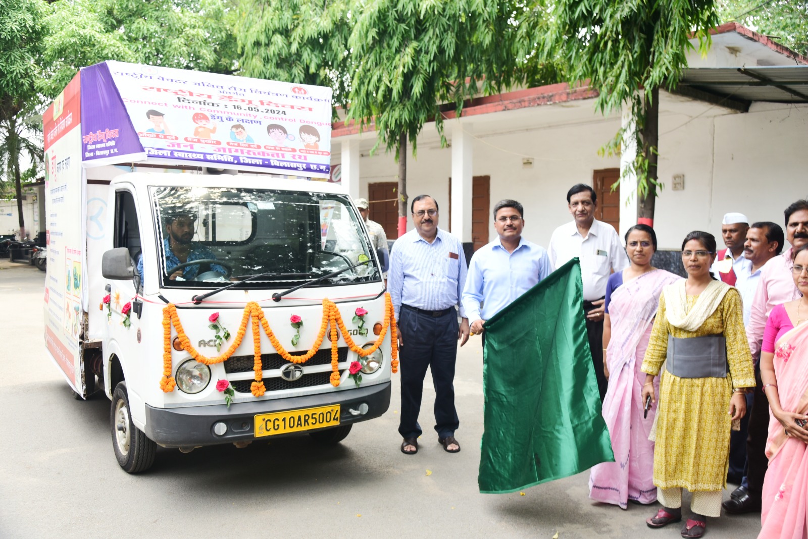 बिलासपुर /जिले में राष्ट्रीय डेंगू दिवस के अवसर पर कलेक्टर श्री अवनीश शरण ने जिला कार्यालय परिसर से डेंगू के नियंत्रण एवं बचाव के लिए जन जागरूकता वाहन को हरी झंडी दिखाकर रवाना किया। इस अवसर पर मुख्य चिकित्सा एवं स्वास्थ्य अधिकारी डॉ. प्रभात श्रीवास्तव, जिला परिवार कल्याण अधिकारी डॉ. प्रमोद तिवारी, जिला मलेरिया अधिकारी डॉ. अनिल श्रीवास्तव, जिला कार्यक्रम प्रबंधक सुश्री पी. मजूमदार, श्रीमती कृष्णा कुमारी, जिला सलाहकार एवं जिला मलेरिया कार्यालय के सभी कर्मचारी उपस्थित थे।
