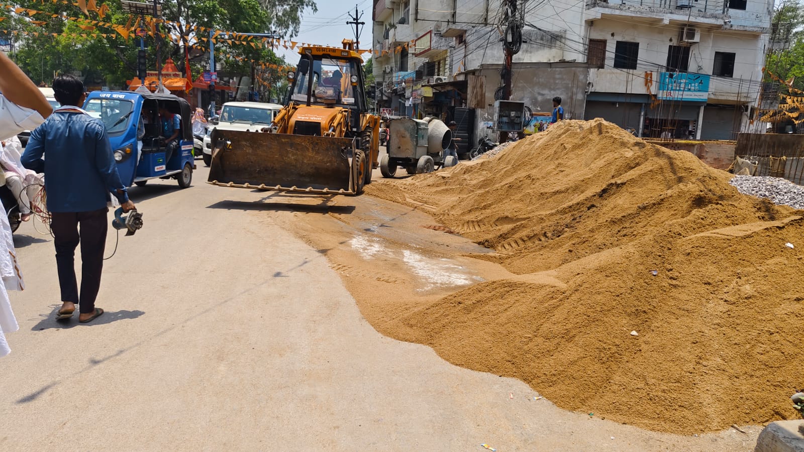 सड़क पर रखी भवन निर्माण सामग्रियों को जप्त कर कुल 5000 रूपये सड़क बाधा शुल्क वसूला