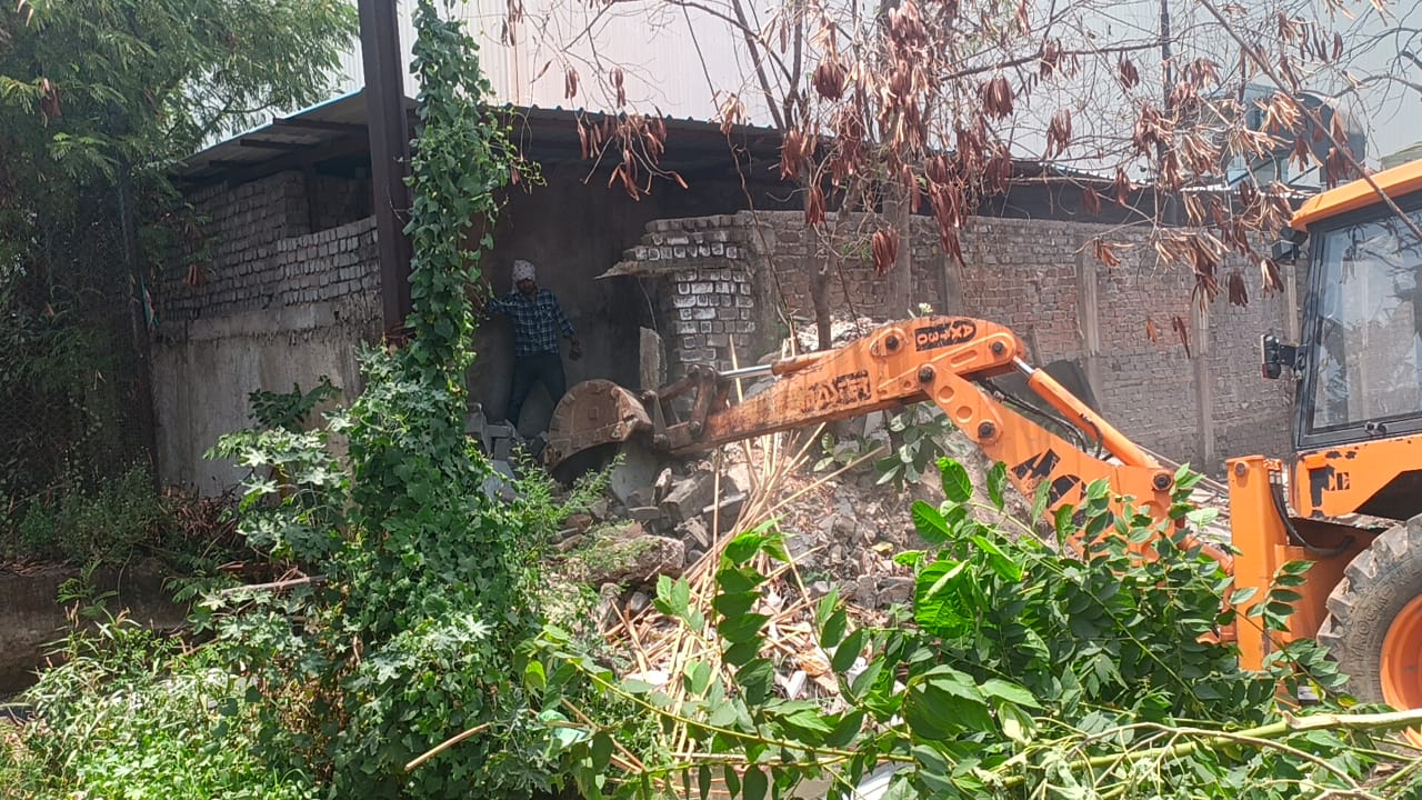 निगम ने व्हीआईपी रोड नाले में अवैध पक्के निर्माण को तोड़ने कार्यवाही की