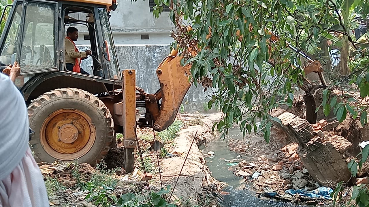 नाली एवं सड़क के ऊपर अवैध निर्माण को तोड़ने की कार्रवाई लगातार जारी