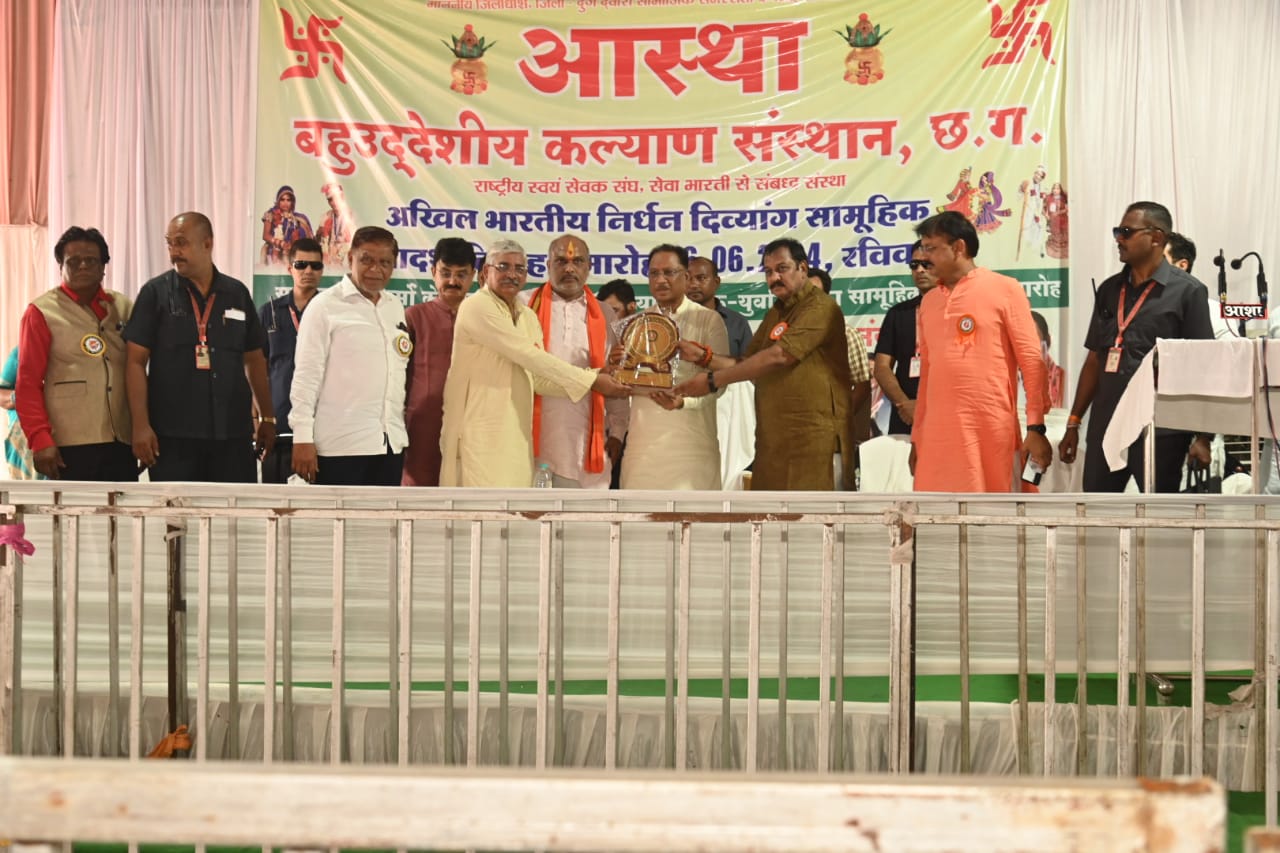 आस्था बहुउद्देशीय कल्याण संस्थान (राष्ट्रीय स्वयं सेवक संघ सेवा भारती से सम्बद्ध संस्था) द्वारा आज अखिल भारतीय निर्धन दिव्यांग सामूहिक आदर्श विवाह समारोह का आयोजन दुर्ग स्थित अग्रसेन भवन में किया गया। सर्व जाति व धर्म के 250 से अधिक दिव्यांग युवक-युवतियों ने निःशुल्क सामूहिक विवाह समारोह में शामिल हुए और शादी के पवित्र बंधन में बंधे। आस्था बुहुउद्देशीय संस्था द्वारा पिछले 20 वर्षों से लगातार सामाजिक सेवा कार्य किया जा रहा है। अब तक 1890 निर्धन दिव्यांग युवक-युवतियों का सामूहिक विवाह कराया है, जो कि निरंतर प्रगति पर है। राजनांदगांव, कोरबा, जशपुर, सूरजपुर, सरगुजा जिलों से आए युवक-युवतियों ने संस्था द्वारा कराए जा रहे आदर्श सामूहिक विवाह को सराहा। विवाह करने आए नवदम्पत्तियों ने बताया कि घर की आर्थिक स्थित कमजोर होने के कारण विवाह मंे होने वाले खर्चे का वहन करने में परिवार वाले सक्षम नही थे। निःशुल्क सामूहिक आदर्श विवाह में हम बेटियों की शादी होने से घर वालों की चिंता अब दूर हो जाएगी। उन्होंने इस विवाह के लिए राज्य सरकार और संस्था को धन्यवाद दिया। सामूहिक विवाह में युवतियों को संस्था द्वारा गृहस्थी का सामान थाली, चम्मच, गिलास, पानी टंकी, लोटा, कटोरी उपहार स्वरूप प्रदान किया गया। साथ ही मंगलसूत्र, पायल, बिछिया, साड़ी उपहार के रूप में दिया गया।