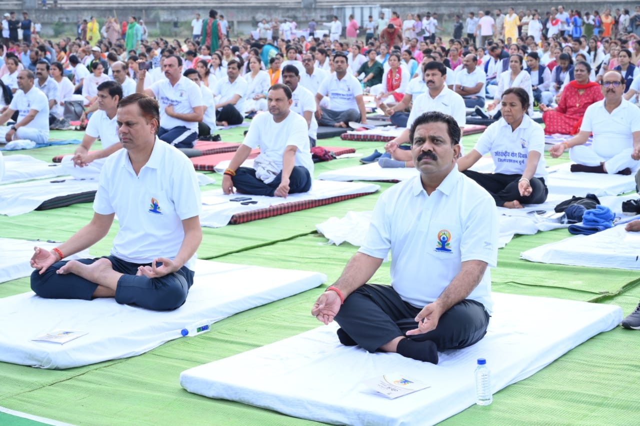 दशम अंतरर्राष्ट्रीय योग दिवस पर रविशंकर स्टेडियम दुर्ग में आयोजित योगा कार्यक्रम में शामिल हुए उप मुख्यमंत्री विजय शर्मा