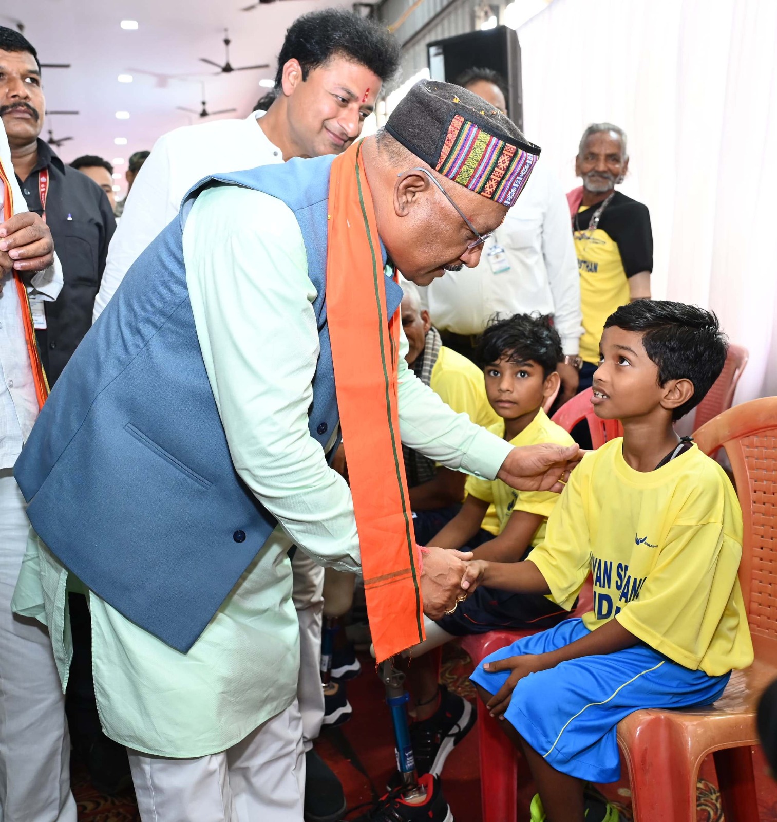 रायपुर / मुख्यमंत्री श्री विष्णु देव साय आज यहां जैन दादा बाडी एमजी रोड में नारायण सेवा संस्थान द्वारा आयोजित विशाल निःशुल्क नारायण लिम्ब एवं कैलिपर्स फिटमेंट शिविर में शामिल हुए। संस्थान ने इस शिविर में छत्तीसगढ़ प्रदेश के रायपुर तथा विभिन्न जिलों से आए 750 से ज्यादा दिव्यांगों को अपर-लोवर लिंब और केलिपर्स लगाकर उनकी रुकी जिंदगी को फिर से शुरू कर दी। इन दिव्यांगों और परिजनों की खुशी हर किसी के मन को छूने वाली थी। आज एक ही दिन में एक ही जगह पर 750 से ज्यादा दिव्यांग नारायण लिम्ब पहनकर मुस्कुराते हुए चले। जो वर्षों पहले किसी दुर्घटना में अपने हाथ-पैर गंवाने से चलने-फिरने में असमर्थ हो चुके थे। जिसके चलते इनकी जिंदगी रुक सी गई थी। इन्हें आज लोवर लिंब, अपर लिंब, मल्टिपल लिंब और केलिपर्स लगाए गए।