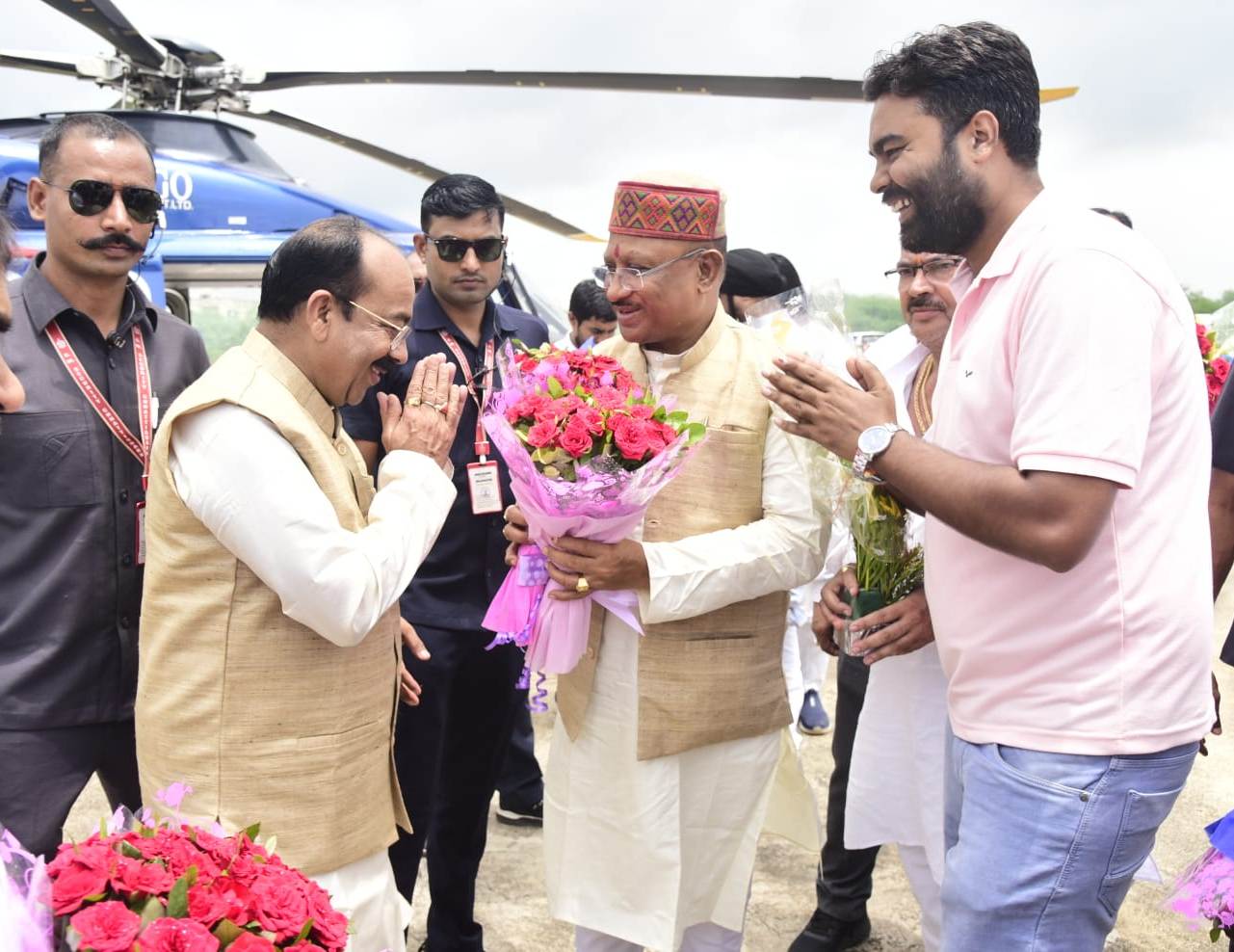 मुख्यमंत्री विष्णुदेव साय का बिलासपुर हेलीपैड पर स्वागत