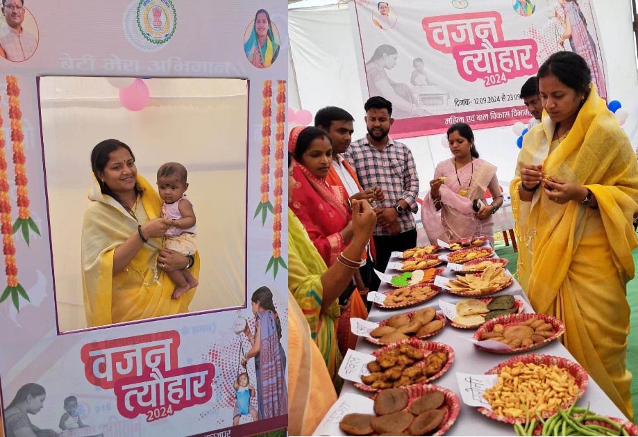 राष्ट्रीय पोषण माह के अंतर्गत राज्य के सभी आंगनबाड़ी केंद्रो में प्रतिदिन पोषण व स्वच्छता संबंधी विभिन्न गतिविधियां आयोजित हो रही हैं। साथ ही जिले में 23 सितंबर 2024 तक सभी केंद्रों में वजन त्यौहार मनाया जा रहा है। इस दौरान आंगनबाड़ी केंद्रों में 0 से 06 वर्ष के बच्चों का वजन एवं ऊंचाई मापना, पोषण स्तर की जांच एवं उनके अभिभावकों को पोषण संबंधित जानकारी दी जा रही है। राज्य में राष्ट्रीय पोषण माह अंतर्गत अब तक डैशबोर्ड में 29 लाख 60 हजार 333 गतिविधियों की एंट्री की जा चुकी है। महिला एवं बाल विकास विभाग की संचालक सुश्री तूलिका प्रजापति ने विभाग के सभी अधिकारी-कर्मचारियों को की जा रही शत-प्रतिशत गतिविधियों की ऑनलाइन एंट्री करने के निर्देश दिए हैं। सभी आंगनबाड़ी केंद्रों में भी समूह बैठक में वजन त्यौहार के बारे में चर्चा की जा रही है। ग्रामीण महिलाओं से चर्चा के दौरान 0 से 06 साल के बच्चे, किशोरी बालिकाओं को खान-पान और स्वास्थ्य देखभाल के बारे में बताया जा रहा है। महिला बाल विकास की योजनाओं की जानकारी देने के साथ ही गर्भवती महिलाओं से पौष्टिक आहार भोजन में शामिल करने का आग्रह किया जा रहा है।