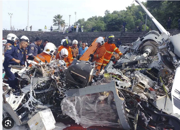नई दिल्ली। मलेशियाई नौसेना ने कहा कि मंगलवार को एक प्रशिक्षण सत्र के दौरान दो सैन्य हेलीकॉप्टर आपस में टकराकर दुर्घटनाग्रस्त हो गए, जिससे उनमें सवार सभी 10 लोगों की मौत हो गई। नौसेना ने एक संक्षिप्त बयान में बताया कि दुर्घटना उस समय हुई जब हेलीकॉप्टर नौसेना की 90वीं वर्षगांठ के जश्न की तैयारी के लिए उत्तरी पेराक राज्य में एक नौसैनिक अड्डे पर प्रशिक्षण में हिस्सा ले रहे थे। नौसेना की 90वीं वर्षगांठ अगले महीने है।