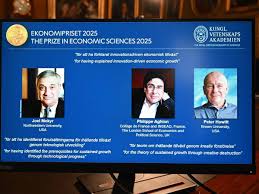 आर्थिक विकास पर नवाचार के प्रभाव की व्याख्या और ‘रचनात्मक विनाश' नाम की एक प्रमुख आर्थिक अवधारणा पर शोध के लिए जोएल मोकिर, फिलिप एगियन और पीटर हॉविट को सोमवार को अर्थशास्त्र के नोबेल पुरस्कार से सम्मानित किए जाने की घोषणा की गई। मोकिर(79) नॉर्थवेस्टर्न यूनिवर्सिटी से, एगियन(69) कॉलेज डी फ्रांस और लंदन स्कूल ऑफ इकोनॉमिक्स से तथा हॉविट (79) ब्राउन यूनिवर्सिटी से हैं। नोबेल समिति ने कहा कि मोकिर ने “यह प्रदर्शित किया कि अगर एक के बाद एक नये नवाचार की स्व-उत्पादक प्रक्रिया सुनिश्चित करनी है, तो हमें न केवल यह जानना होगा कि कौन-सी चीज काम करती है, बल्कि हमें इस बात की वैज्ञानिक समझ भी हासिल करनी होगी कि वह क्यों काम करती है।” ‘रचनात्मक विनाश' से आशय इस आर्थिक अवधारणा से है कि जब एक नया और बेहतर उत्पाद बाजार में दस्तक देता है, तो पुराने उत्पाद बेचने वाली कंपनियां नुकसान में आ जाती हैं।