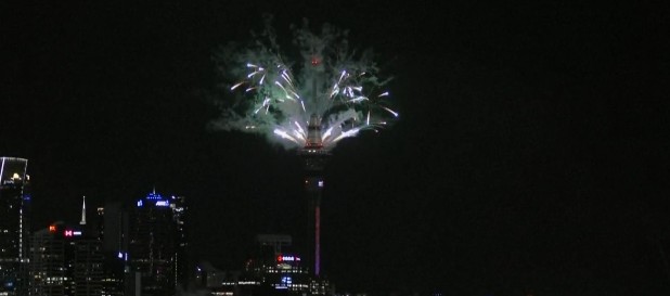इनके बाद न्यूजीलैंड ने भी नए साल का स्वागत आतिशबाजी से किया। ऑकलैंड ने स्काई टॉवर पर रंगीन आतिशबाजी के साथ नए साल को रोशन किया। पांच मिनट के इस शो में 240 मीटर (787 फीट) ऊंचे टॉवर, जो न्यूजीलैंड की सबसे ऊंची इमारत है, की अलग-अलग मंजिलों से 3,500 पटाखे चलाए गए।