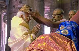 तिरुचिरापल्ली. प्रधानमंत्री नरेन्द्र मोदी ने शनिवार को पारंपरिक तमिल परिधान पहनकर यहां श्री रंगम में श्री रंगनाथस्वामी मंदिर में पूजा-अर्चना की। प्रधानमंत्री मोदी ने तमिलनाडु के इस प्राचीन मंदिर में दर्शन के दौरान ‘वेष्टि' (धोती) और ‘अंगवस्त्रम' (शॉल) पहना था। उन्होंने भगवान विष्णु के मंदिर में पूजा-अर्चना की और हाथी को भोजन देकर आशीर्वाद लिया। मोदी ने इस दौरान श्री रंगनाथस्वामी के दर्शन किए। उन्हें मंदिर के पुजारियों ने 'सदरी' प्रदान की।