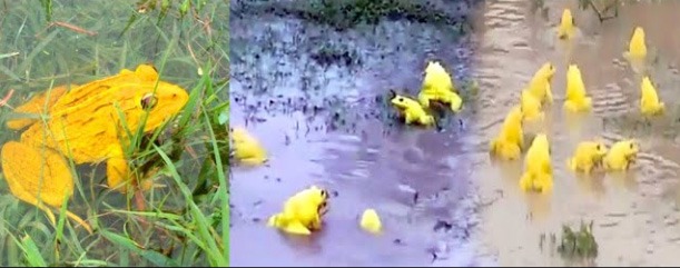 तालाब में दिखे दुर्लभ पीले मेंढक, लोगों ने अच्छी बारिश होने की जताई संभावना