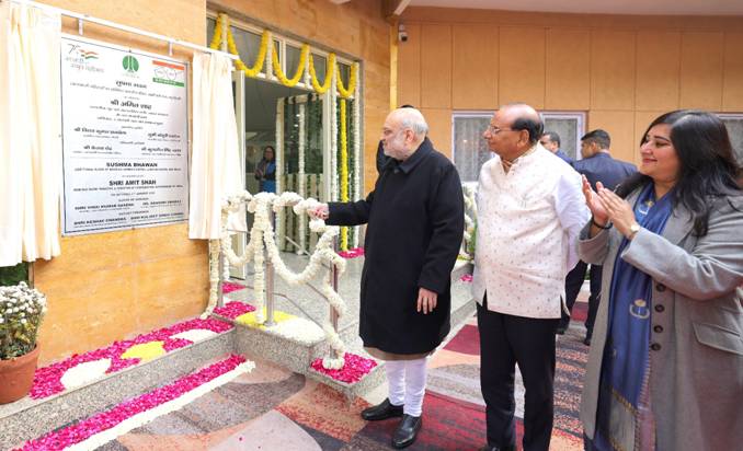 नई दिल्ली। केन्द्रीय गृह एवं सहकारिता मंत्री श्री अमित शाह ने आज नई दिल्ली में नई दिल्ली नगर पालिका (NDMC) द्वारा निर्मित नए वर्किंग विमेंस हॉस्टल ब्लाक 'सुषमा भवन' का उद्घाटन व मोती बाग में पशु चिकित्सालय का वर्चुअल उद्घाटन किया। इस अवसर पर दिल्ली के उपराज्यपाल श्री वी के सक्सेना और नई दिल्ली की सांसद बाँसुरी स्वराज सहित अनेक गणमान्य व्यक्ति उपस्थित थे।
