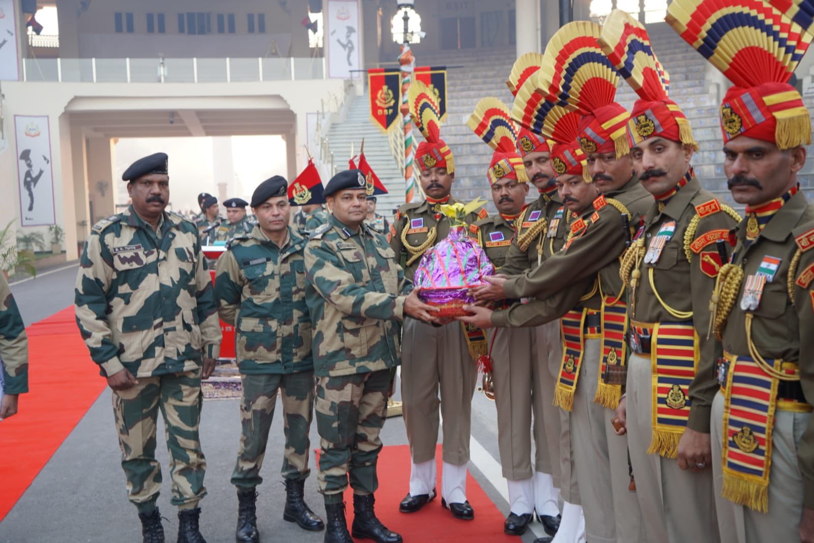 नई दिल्ली। आज पूरा देश हर्षोल्लास के साथ गणतंत्र दिवस मना रहा है। उत्तर से लेकर दक्षिण और पूर्व से पश्चिम तक राष्ट्रीय पर्व की धूम है। पंजाब के वाघा-अटारी बॉर्डर पर पूरी आन-बान-शान के साथ तिरंगा फहराया गया जिसे देखने के लिए भारी संख्या में लोग जुटे। इस मौके पर बीएसएफ कमांडेंट हर्ष नंदन जोशी ने सभी नागरिकों को गणतंत्र दिवस की बधाई दी। कमांडेंट हर्ष नंदन जोशी ने जवानों को मिठाई खिलाई और उनका मुंह मीठा कराया। इस दौरान उन्होंने कहा कि किसी को भी देश की सुरक्षा व्यवस्था से छेड़छाड़ करने की इजाजत नहीं दी जाएगी चाहे वह पड़ोसी देश ही क्यों न हो। उन्होंने यह भी कहा कि बीएसएफ के जवान उनके परिवार के सदस्य जैसे हैं। गणतंत्र दिवस के मौके पर विभिन्न राज्यों में अलग-अलग सांस्कृतिक कार्यक्रमों का भी आयोजन किया जा रहा है।
