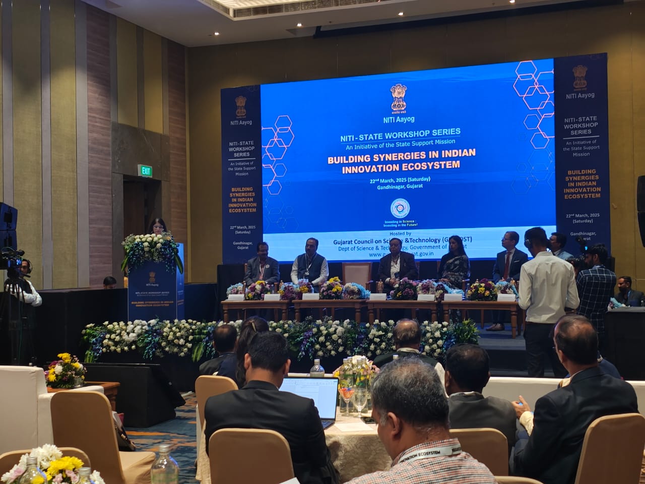 गांधीनगर । नीति आयोग द्वारा गुजरात के गांधीनगर स्थित गिफ्ट सिटी में “भारतीय नवाचार इकोसिस्टम में तालमेल का निर्माण” विषय पर शनिवार को एक राष्ट्रीय कार्यशाला का आयोजन किया गया। इसकी मेजबानी गुजरात विज्ञान एवं प्रौद्योगिकी परिषद (गुजकॉस्ट),विज्ञान एवं प्रौद्योगिकी विभाग, गुजरात सरकार ने की। कार्यशाला में नवाचार और प्रौद्योगिकी के क्षेत्र में प्रख्यात नेताओं द्वारा संचालित कई संवादात्मक चर्चाएं शामिल थीं।