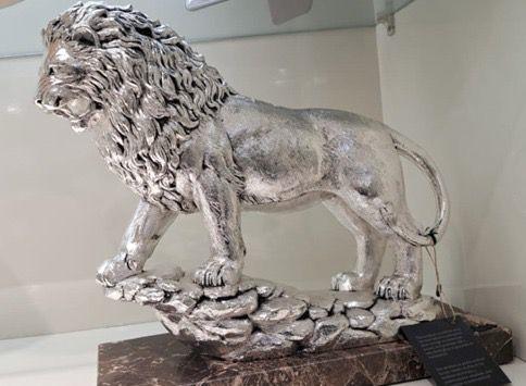 राजस्थानी कारीगरों की ओर से भारत के खनिज समृद्ध क्षेत्रों से प्राप्त चांदी और फुचसाइट का उपयोग करके चांदी का शेर तैयार किया गया, यह देश की समृद्ध कलात्मक और भूवैज्ञानिक विरासत को खूबसूरती से दर्शाता है।