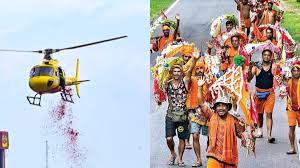 अयोध्या, बाराबंकी और बस्ती में कांवड़ियों पर हेलीकॉप्टर से बरसाए गए फूल