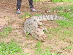 गांव में घुसा छह फुट से अधिक लंबा मगरमच्छ, पकड़कर जंगल में छोड़ा गया
