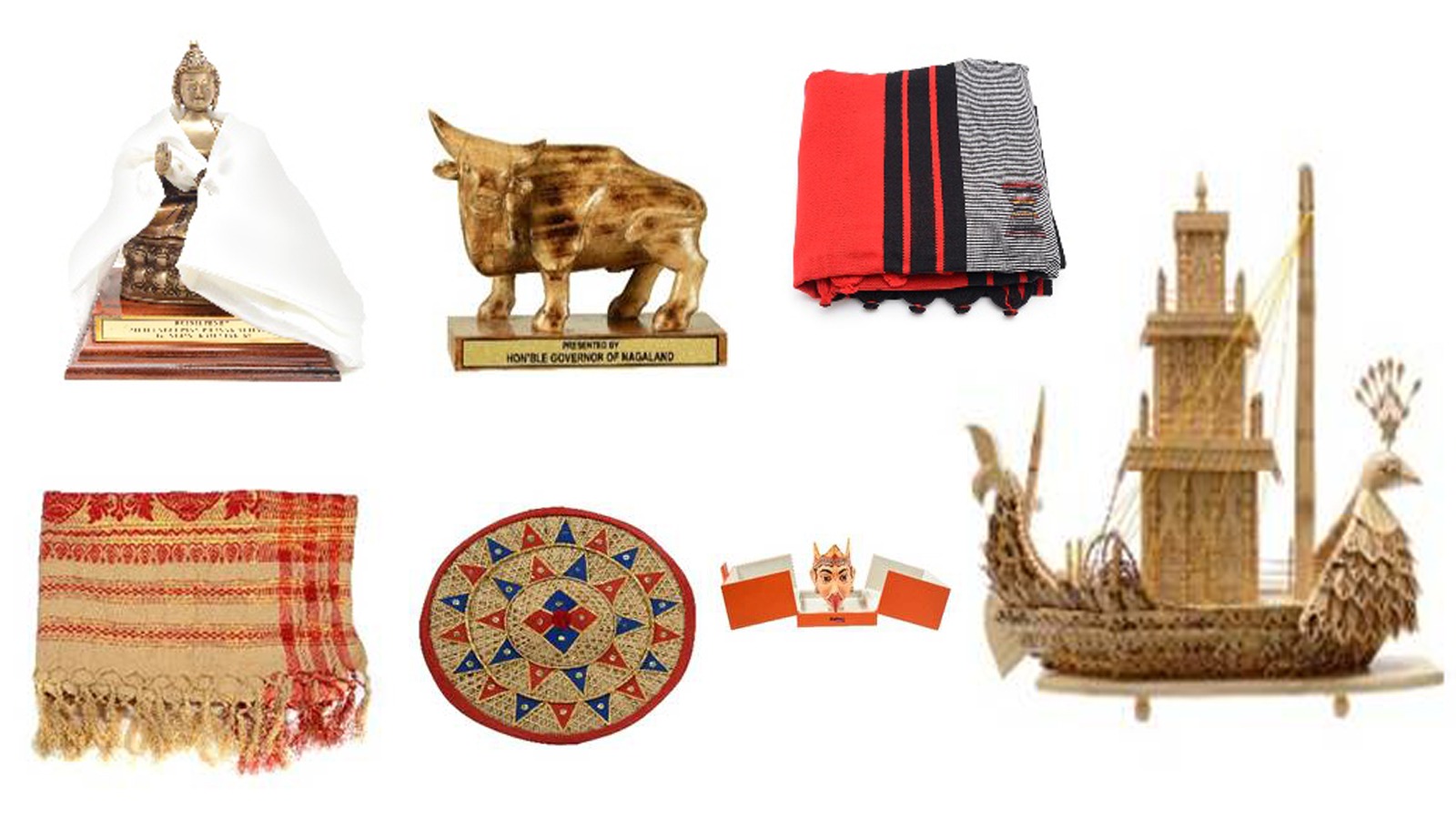 इस नीलामी में नगालैंड, मेघालय, असम, सिक्किम और अरुणाचल प्रदेश से आए कई विशेष उपहार आकर्षण का केंद्र बने हुए हैं। नगालैंड की ओर से एक लकड़ी की मिथुन मूर्ति और पारंपरिक नागा शॉल शामिल है, जिसमें लाल पैनल और भाले-ढाल के पारंपरिक डिजाइन हैं, जो सम्मान और साहस का प्रतीक माने जाते हैं। मेघालय से गन्ने और बांस से बनी एक जहाज की कलात्मक प्रतिकृति नीलामी में रखी गई है, जो स्थानीय शिल्पकारों की रचनात्मकता को दर्शाती है।