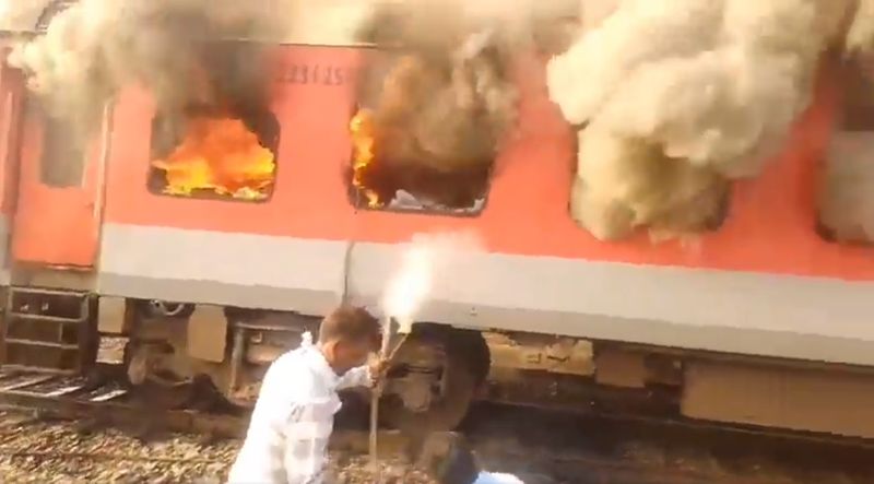 अधिकारी ने बताया कि एक यात्री ने ट्रेन रोकने के लिए चेन (अलार्म चेन खींचने की प्रणाली) खींची जिसके बाद यात्रियों को डिब्बे से सुरक्षित बाहर निकाल लिया गया। उन्होंने बताया कि आग ने डिब्बे (जी-19) को जल्द ही अपनी चपेट में ले लिया। दो अन्य डिब्बों को भी मामूली नुकसान हुआ। जीआरपी अधिकारी ने बताया कि तीनों डिब्बों को ट्रेन के बाकी हिस्सों से अलग कर दिया गया और दमकल गाड़ियों को तुरंत बुलाया गया। रेलवे बोर्ड ने बताया कि घटना में एक महिला को मामूली चोटें लगी हैं।