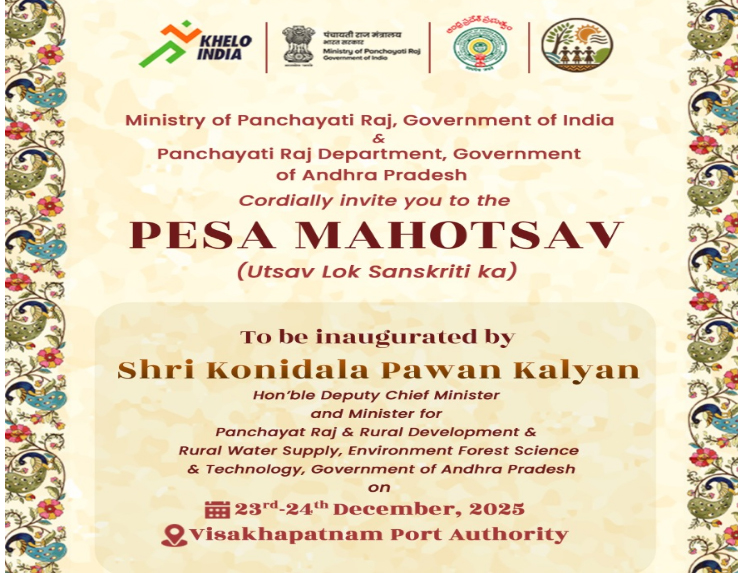 आंध्र प्रदेश के विशाखापत्तनम में 23–24 दिसंबर, 2025 को ‘पेसा महोत्सव’ का भव्य आयोजन किया जाएगा