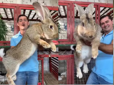 कुछ सबसे पसंदीदा पेट्स में से एक खरगोश भी होते हैं. लोग इन्हें पसंद भी खूब करते हैं और छोटे होने की वजह से इन्हें पालना भी बेहद आसान होता है. लोग इन्हें हाथों में लेकर खूब प्यार और दुलार करते हैं क्योंकि इनका वज़न भी कम होता है. हालांकि आज हम आपको जिस खरगोश से मिलवाने जा रहे हैं, वो न तो छोटा है, न ही हल्का बल्कि ये घर में पले तो आपको डॉग्स की तरह इसके लिए इंतज़ाम करना पड़ेगा.