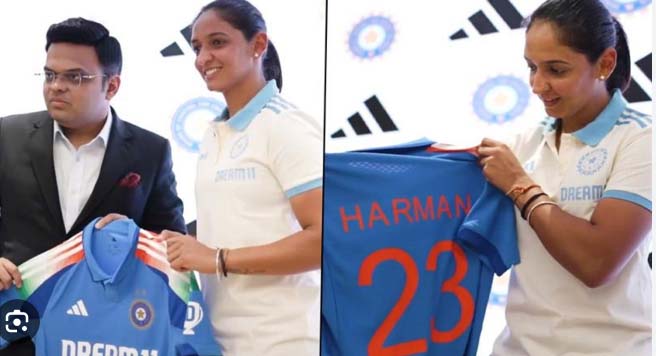 नई दिल्ली। भारतीय राष्ट्रीय क्रिकेट टीम की वनडे में नई जर्सी होगी, जिसका अनावरण शुक्रवार, 29 नवंबर को किया गया। . भारतीय क्रिकेट कंट्रोल बोर्ड (BCCI) के सचिव जय शाह और भारतीय महिला क्रिकेट टीम की कप्तान हरमनप्रीत कौर ने मुंबई में बीसीसीआई मुख्यालय में आयोजित एक समारोह में टीम इंडिया की नई वनडे जर्सी का अनावरण किया.। इस नई जर्सी के कंधे पर तिरंगा पैटर्न है। साथ ही एडिडास की ट्रेडमार्क धारियाँ भी हैं। हरमनप्रीत कौर ने इस बात पर उत्साह व्यक्त किया कि भारतीय महिला राष्ट्रीय क्रिकेट टीम इसे पहनने वाली पहली खिलाड़ी होगी। भारतीय महिला राष्ट्रीय क्रिकेट टीम तीन वनडे मैचों की श्रृंखला के बाद ऑस्ट्रेलिया से भिड़ेगी और 50 ओवर के प्रारूप में उनका अगला मुकाबला वेस्टइंडीज से होगा।