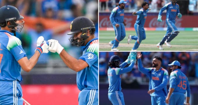 नयी दिल्ली, । चैम्पियंस ट्रॉफी फाइनल में भारत की खिताबी जीत के साथ ही सोशल मीडिया पर रोहित शर्मा की टीम को बधाइयां देने का सिलसिला शुरू हो गया और राजनेताओं, पूर्व खिलाड़ियों से लेकर जानी मानी हस्तियों ने टीम की जमकर तारीफ की है । भारत ने रविवार को फाइनल में न्यूजीलैंड को चार विकेट से हराकर तीसरी बार खिताब जीता । कप्तान रोहित शर्मा ने मोर्चे से अगुवाई करते हुए 76 रन की पारी खेली । सोशल मीडिया पर कुछ प्रमुख प्रतिक्रियायें इस प्रकार रही ।