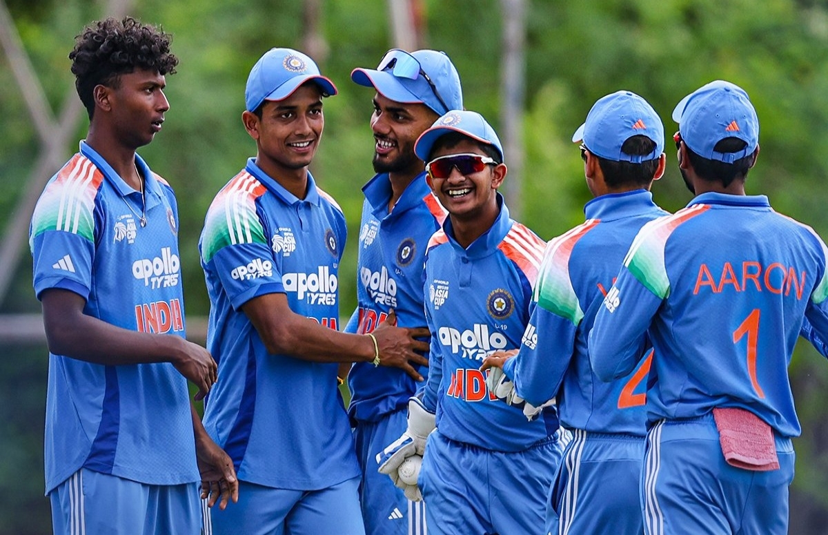भारत की तरफ से हेनिल पटेल और कनिष्क चौहान ने 2-2 विकेट झटके, जबकि किशन कुमार सिंह, दीपेश देवेंद्रन और खिलन पटेल को 1-1 विकेट मिला।